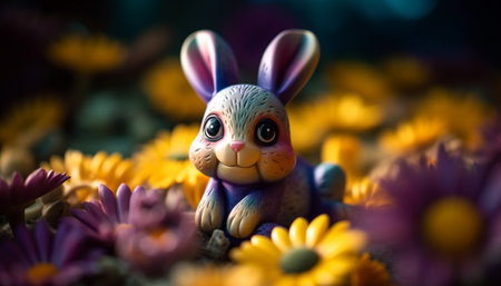 Fluffy baby rabbit enjoys springtime meadow celebration generated by artificial intelligence