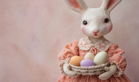 Easter white bunny in chocolate eggshell pink background Easter Holiday Concept