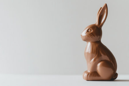 profile chocolate rabbit with ample negative space, clean composition and soft shadow, ideal mockup for branding and product placement. Minimalist styling and versatile layout for promotional banners.
