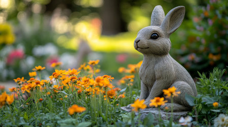 Charming Easter Bunny Figurines Nestled Amongst Blooming Spring Flowers.