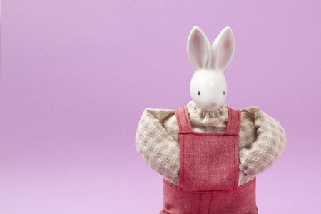 Rabbit toy on pink background with copy space. Easter concept.