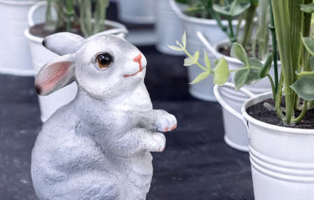 Fluffy Easter bunny decoration. Selective focus.
