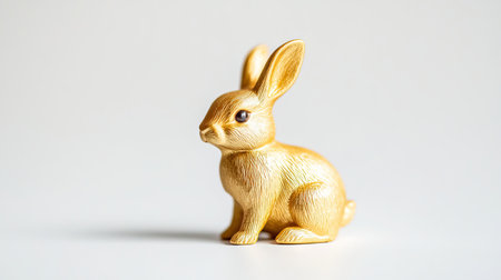 Golden Rabbit Figurine Close-Up Celebrating Chinese New Year. Concept of Prosperity, Lunar Festivities, Cultural Symbolism, and Tradition.
