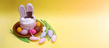 Easter bunny decoration close up banner with copy space