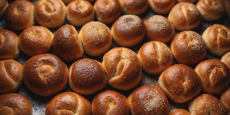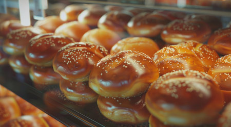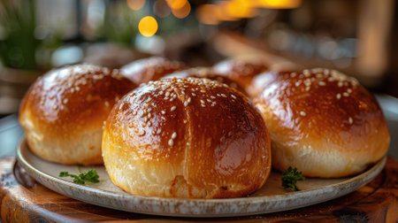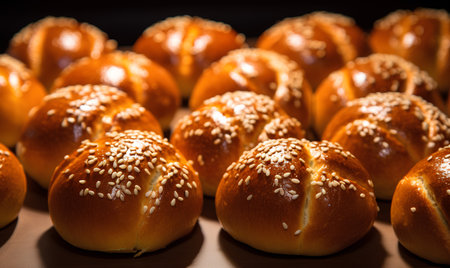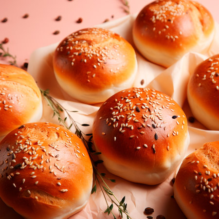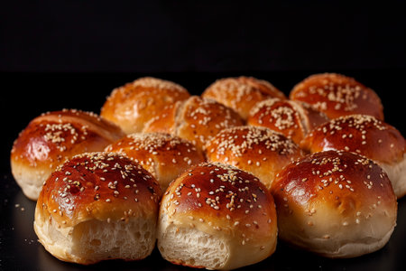 Freshly baked golden rolls with sesame seeds, perfect for a delicious meal or snack. Soft and flaky texture, mouthwatering aroma.