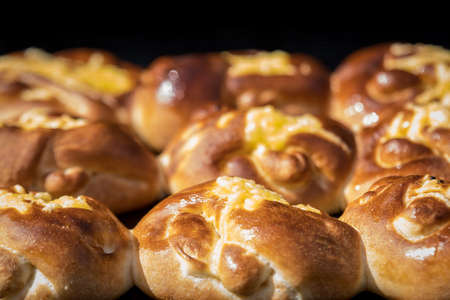Rustic buns of sweet milk and cinnamon. Gastronomic concept