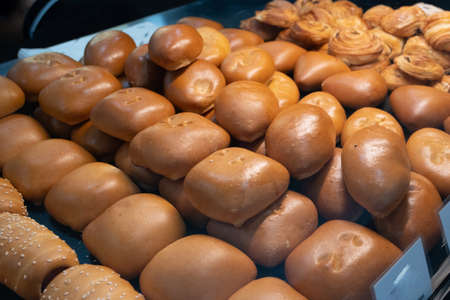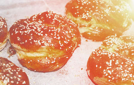 Fresh twisted buns with sesame seeds in the early morning. Morning sunshine
