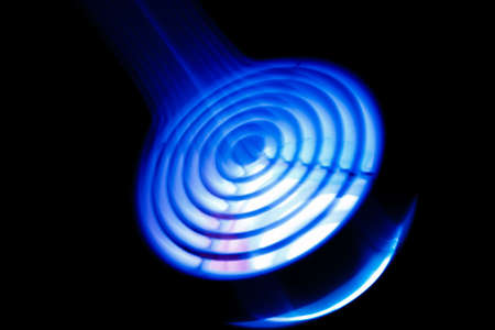This is the bluish flame of the cooking gas close-up shot in the night.