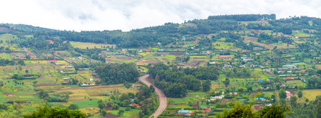 Village in the highlands of Rwanda in a summer day