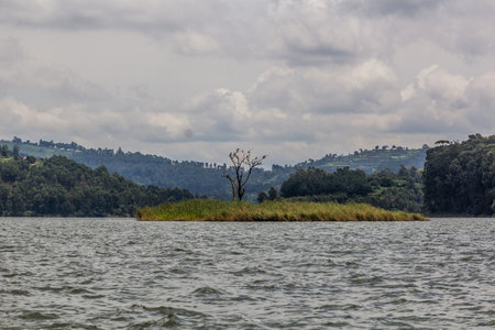 Beautiful landscape of an island full of trees in Lake Bunyonyi in Uganda, Africa