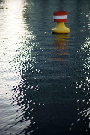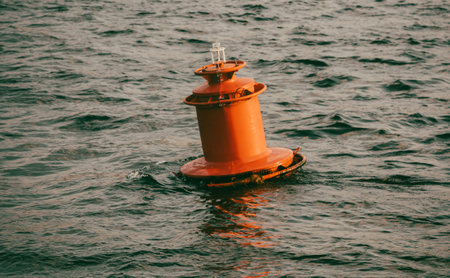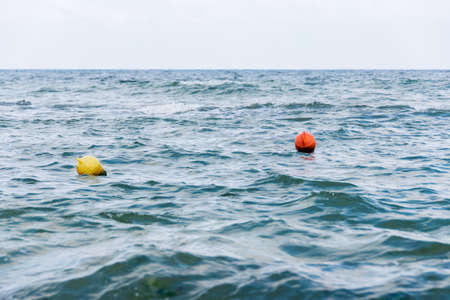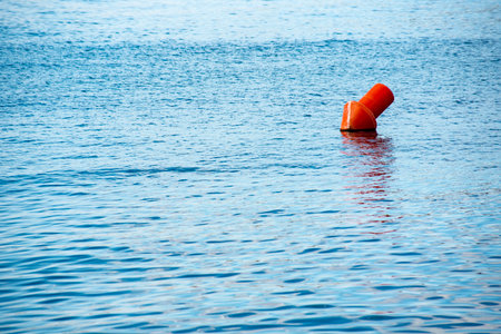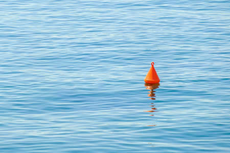 Orange buoy on the water in the sea. Selective focus.