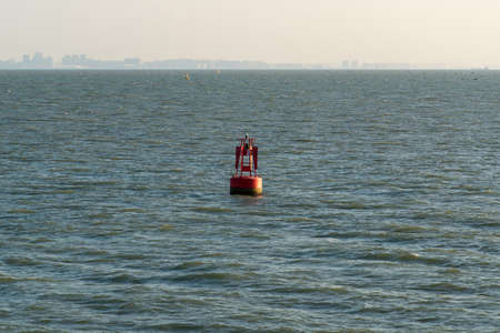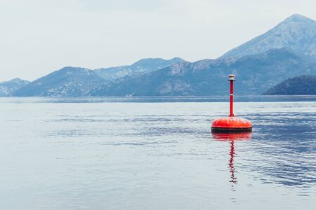 Buoy in the sea. Sea buoy. Floating sign in the Bay. Fencing of the waterway for navigation. Shipping signs. Important signs for the pilot.