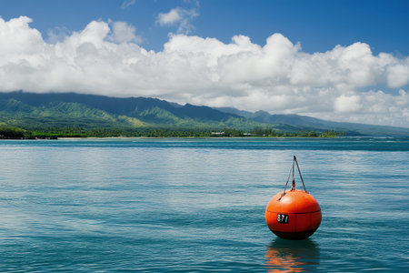 Orange buoy on the tranquil blue water