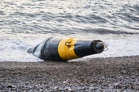 damaged sea buoy washed ashore after a storm