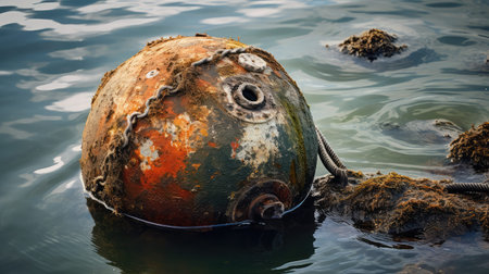 Buoy floating in sea, creative digital illustration, nature, sea & ocean
