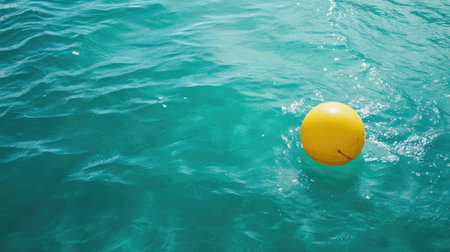 A bright yellow ball floats gently on the tranquil turquoise waters, creating a playful and serene scene perfect for summer leisure and outdoor fun.