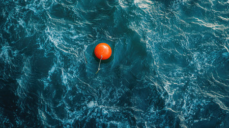 A vibrant orange buoy floats effortlessly on the deep blue ocean, surrounded by gentle waves. This striking image captures the essence of tranquility and marine beauty.
