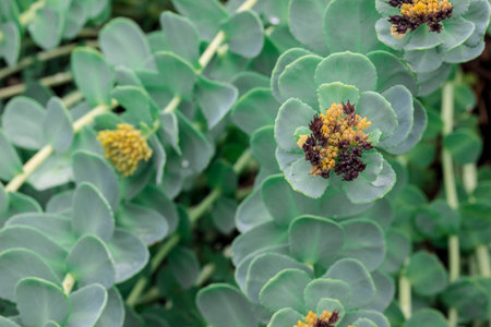 Rhodiola. colorful detailed macro photo of a flower on a blurred background with highlights and bokeh. text space. natural beauty. close-up. Rhodiola rosea. Crassulaceae.
