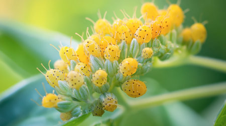 Captivating close-up of vibrant yellow plant buds against a lush green background, showcasing the beauty and detail of nature's growth and vitality.