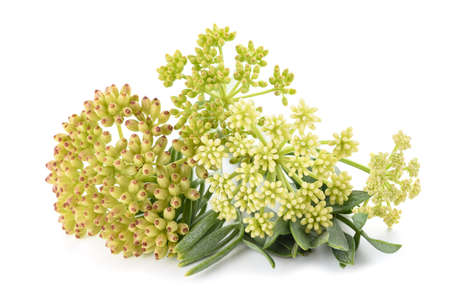 Umbrella flower of Dill, used in kitchen cooking to flavor, isolated on black background