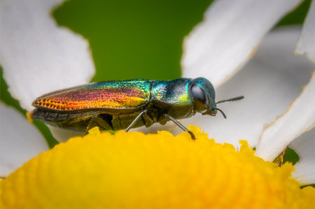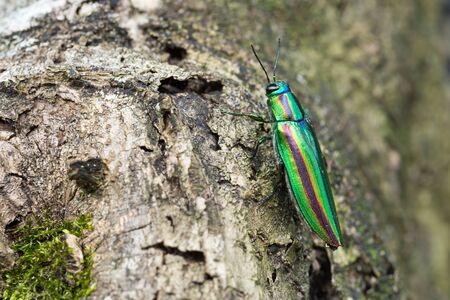 emerald ash borer Destroyer of Ash, beautiful Buprestid beetle. , Flying insect, side