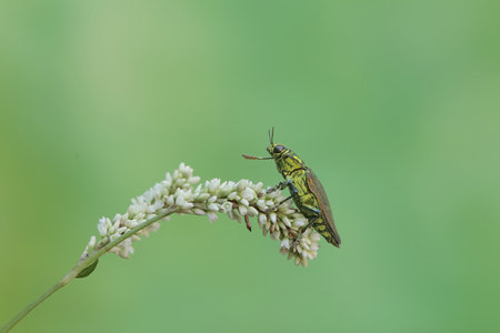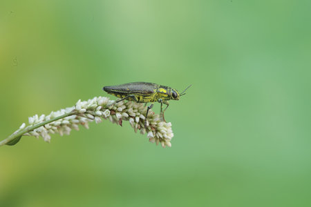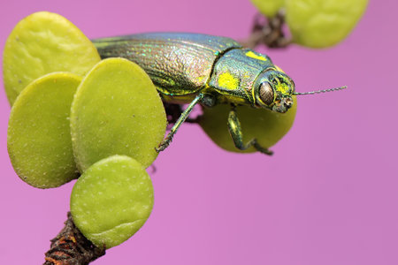 Jewel beetle in field macro shot, Thailand