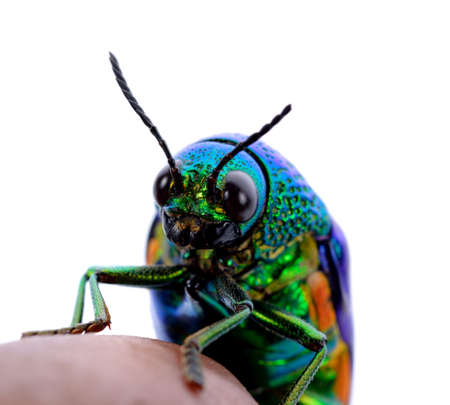 Beautiful Jewel Beetle or Metallic Wood-boring (Buprestid) isolated on white background.