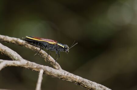 A metallic wood-boring beetle, Jewel beetle, Buprestid (Sternocera aequisignata) in nature