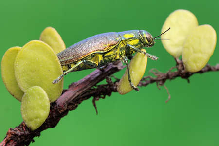 Tropical jewell beetle Polybothris sumptuosa from Madagascar. Buprestidae. Coleoptera. Beetles. The unusual world of insects