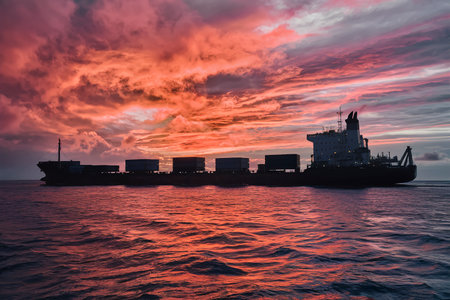 Silhouette of container ship delivering steel cargo generated by artificial intelligence