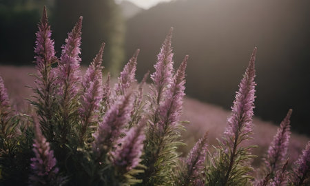 purple lavender on a background of a field.