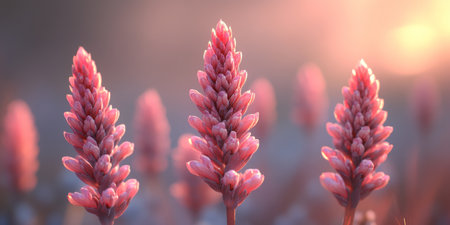 AI Generated. A field of pink flowers rests atop a lush green field