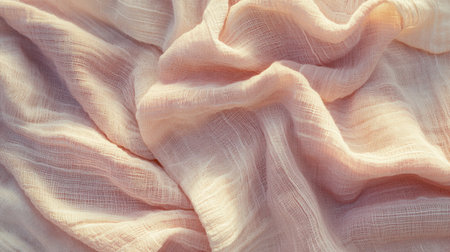 A captivating close-up of a soft pink fabric featuring gentle wrinkles and natural light, perfect for elegant home decor or fashion styling inspiration.