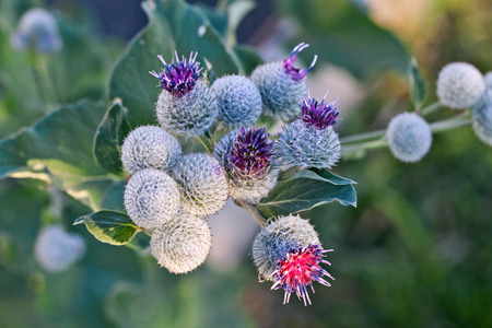 burdock flowers on natural plant blurred background