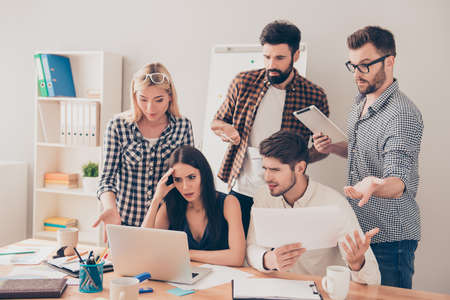 Business meeting. Team of young people working on new project. Discussion of strategy planning. Brainwork and ideas generation.