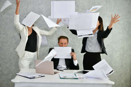 Successful team. modern office life. together in business. businesspeople in office. businessman and businesswoman at workplace. too much work with documents. business partnership success