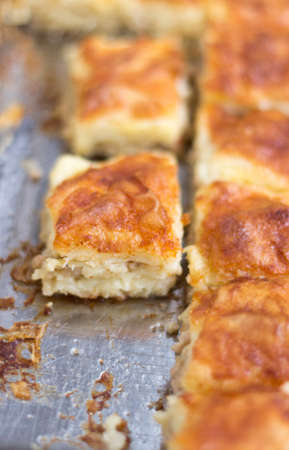 Delicious Turkish food; Tray pastry; (Turkish name; Su boregi)
