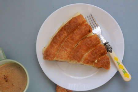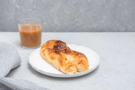 Balkan cuisine. Burek ( byrek, borek, bourekas, boreg ) is a baked filled pastries, popular national dish. Flat lay, copy space