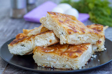 Traditional feta cheese phyllo pastry pie, borek or burek