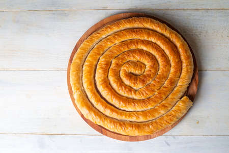 Turkish Tray Boregi, Round Borek, Tray pastry (Turkish name; Roll Borek).