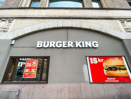 Stockholm, Sweden - March 18, 2021: Burger king in Stockholm with an advertisement for Burger Kings offer