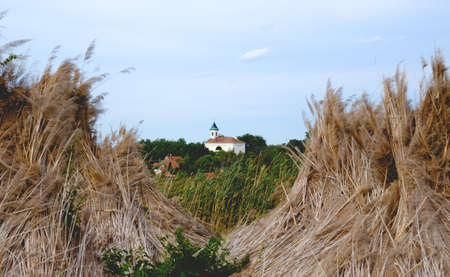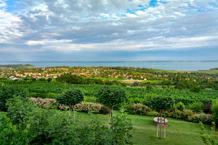 Nice vineyard farm over the Lake Balaton in Hungary with flowers landscape