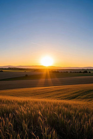 The beauty of the sunrise in the golden field, the poetic idyll of the earth's color blocks