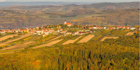Aerial view of the wine-growing village of Vrbice in Moravian Tuscany