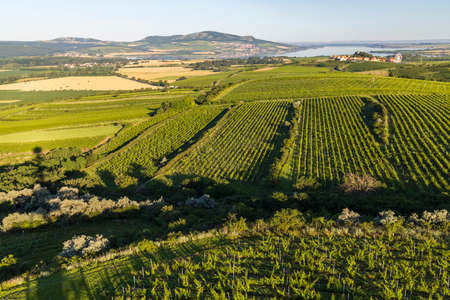 Vineyards in Palava region, Landscape of South Moravia, Czech Republic, view from above, drone shoot