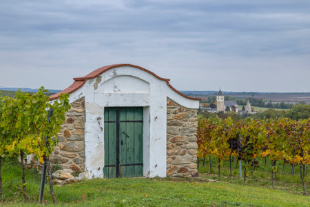 Traditional wine cellars with vineyard in Galgenberg near Wildendurnbach, Lower Austria, Austria