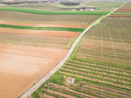 A scenic view of a vineyard in Loamgrui, Weinviertel, Austria