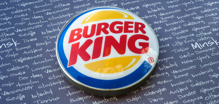 Cologne, Germany - July 11, 2015: Logo of the fast food chain Burger King. Burger King is a global chain of hamburger fast food restaurants