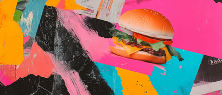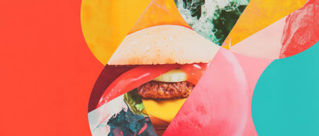 Mixing textures and colors in a minimalistic geometric collage featuring burger imagery