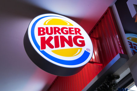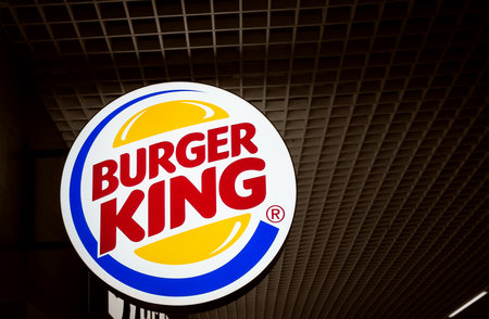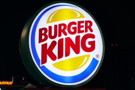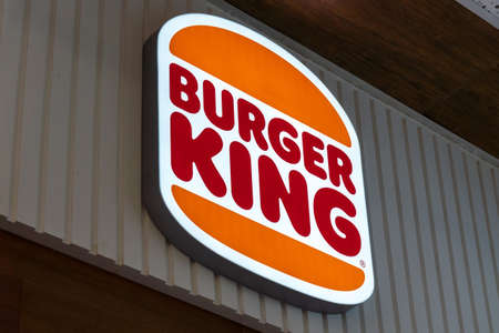 Tyumen, Russia - October 03, 2019: Burger King Restaurants logo. Global chain of hamburger fast food restaurants.